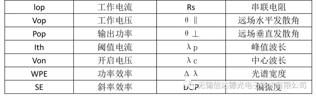 测试的主要特征性能参数: